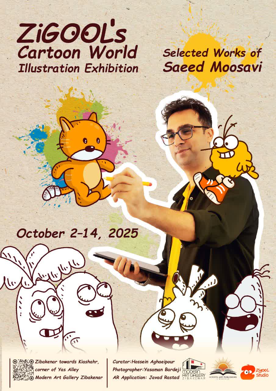 سعید موسوی، کارتونیست و انیماتور رشتی با نام هنری «زیگول»، تازهترین آثار تصویرسازی و انیمیشن خود را از ۱۱ مهرماه در نمایشگاه انفرادی «دنیای کارتونی زیگول» در گالری هنر مدرن زیباکنار به نمایش میگذارد.